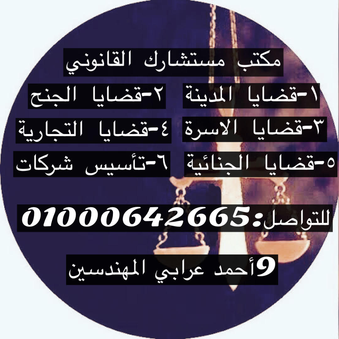 مكتب مستشارك القانوني للمحاماه و الاستشارات القانوني مكتب متخصص في القضايا 1-المدنيه 2-تاسيس الشركات 3-جنح 4- جنايات 5-قضايا تجاريه 6-قضايا الاسرة #الاستشاره مجانا #مكتب_ متخصص_ في_ القضايا_في مصر #مستشارك _القانوني_في_ مصر #افضل _محامي _في _مصر #أشهر _محامي_في _مصر #أشهر _محامي _بمصر كل اللي عليك تتواصل هاتفيا علي 01000642665 01148500092 او نورنا في 9 احمد عرابي سفنكس المهندسين